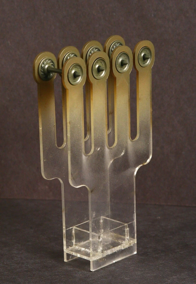 These paint masks are precision cut to fit popular high quality HO scale wheel sets. It not only keeps paint off of the wheel treads leaving just the front and back wheel faces and axle exposed for color, but keeps the modeler’s hands clean as well. The mask will hold four axles and, once painted, each of its “fingers” can be individually pulled apart to release one wheel set at a time. Unlike cardboard masks, these will last for years! The mask is easy to assemble from 5 clear acrylic parts; a plastic solvent glue, such as Creations Unlimited’s Plastic-I-Weld, is all that is required.