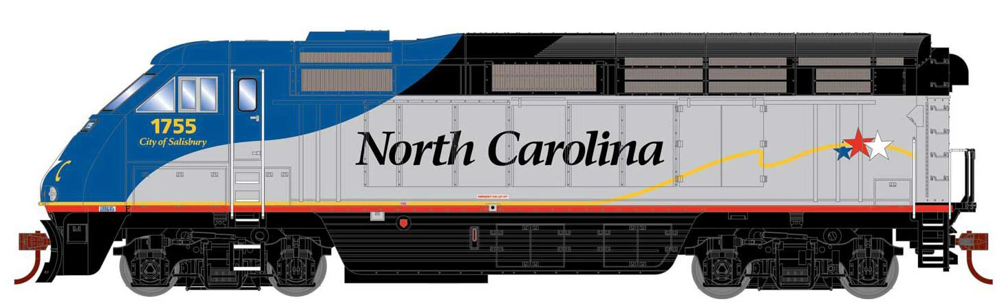NORTH CAROLINA DOT FEATURES: Beginning in 1995, North Carolina developed the Piedmont regional train as a follow-on to Amtrak’s Carolinian. The train runs between Charlotte and Raleigh and runs a maximum of six times a day. Among the motive power used for this service are two EMD F59PHI locomotives, #1755 and 1797. The trains are operated by Amtrak crews; the state owns the locomotives and rolling stock.