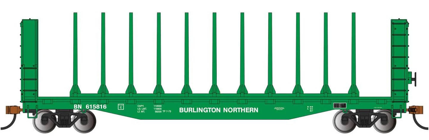 Flatcars of this type were used for bundling together supplies like lumber. This HO-scale 52′ Centerbeam Bulkhead Flatcar comes ready-to-run with a beautifully constructed frame decorated in a lush green paint job. The perfect addition to your freight consist!