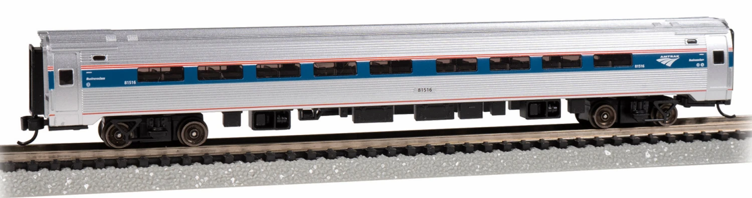 Now it’s easy to add modern Amtrak trains to your N Scale railroad. These new Bachmann Silver Series Amfleet cars feature detailed plastic bodies, interior seats, tinted windows, blackened metal wheels, interior lights and standard N couplers. Each wears recent Amtrak colors and logos, so they’ll look great in your most modern Amtrak consists.