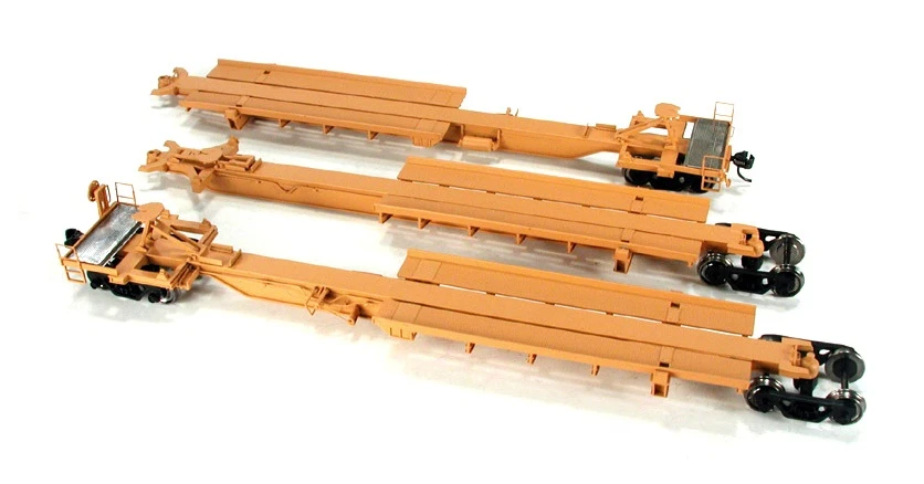 The spine cars are one of the most recognizable freight cars on the rails today. Named after their simple, spine-like appearance, these versatile cars carry anything from highway trailers, to international corrugated containers. Built in late 1997 by Trinity Rail for TTX, these cars feature TTAX reporting marks.