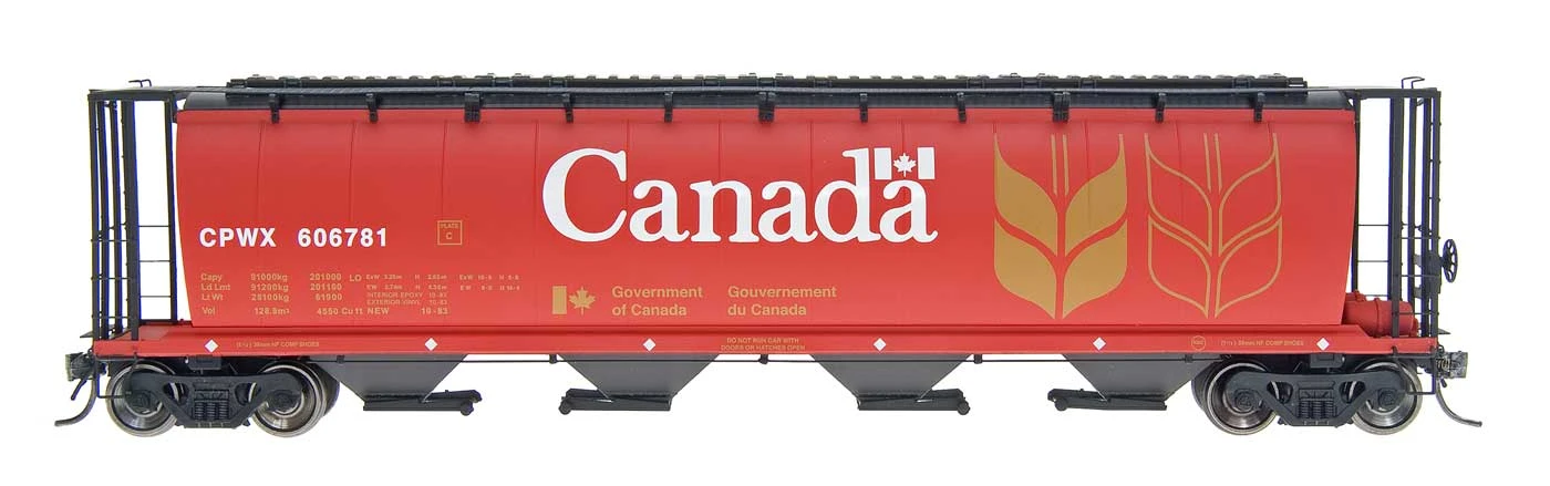 The car is commonly referred to as the “Canadian Grain Car”. Between 1972 and 1985 almost 20,000 cars were built for the Canadian government to assist the Canadian railways in transporting vast quantities of grain. Canadian National, Canadian Pacific, and other companies own or lease this type of car.