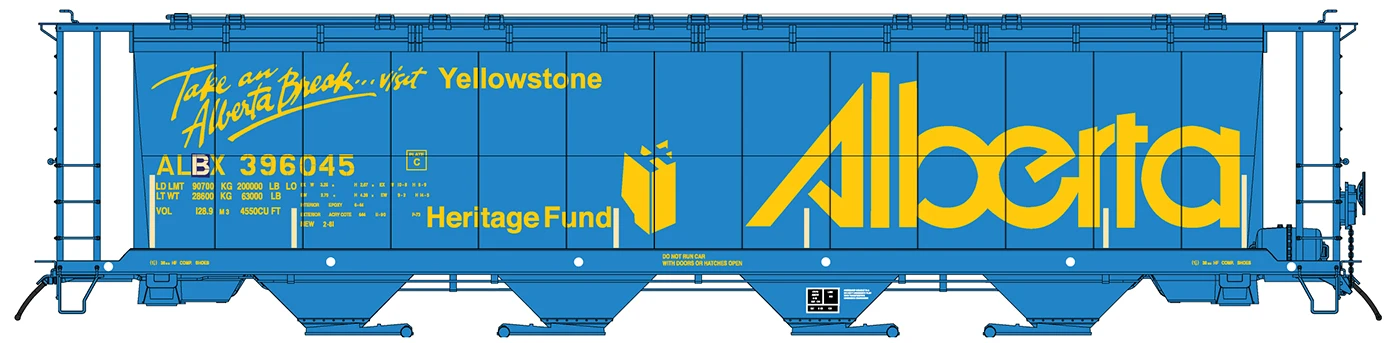 The car is commonly referred to as the “Canadian Grain Car”. Between 1972 and 1985 almost 20,000 cars were built for the Canadian government to assist the Canadian railways in transporting vast quantities of grain. Canadian National, Canadian Pacific, and other companies own or lease this type of car.