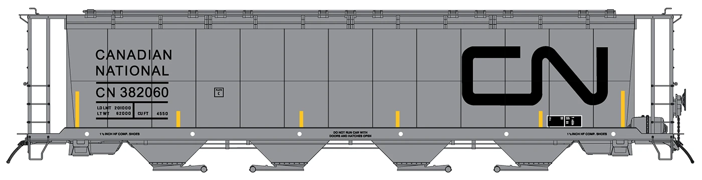 The car is commonly referred to as the “Canadian Grain Car”. Between 1972 and 1985 almost 20,000 cars were built for the Canadian government to assist the Canadian railways in transporting vast quantities of grain. Canadian National, Canadian Pacific, and other companies own or lease this type of car.
