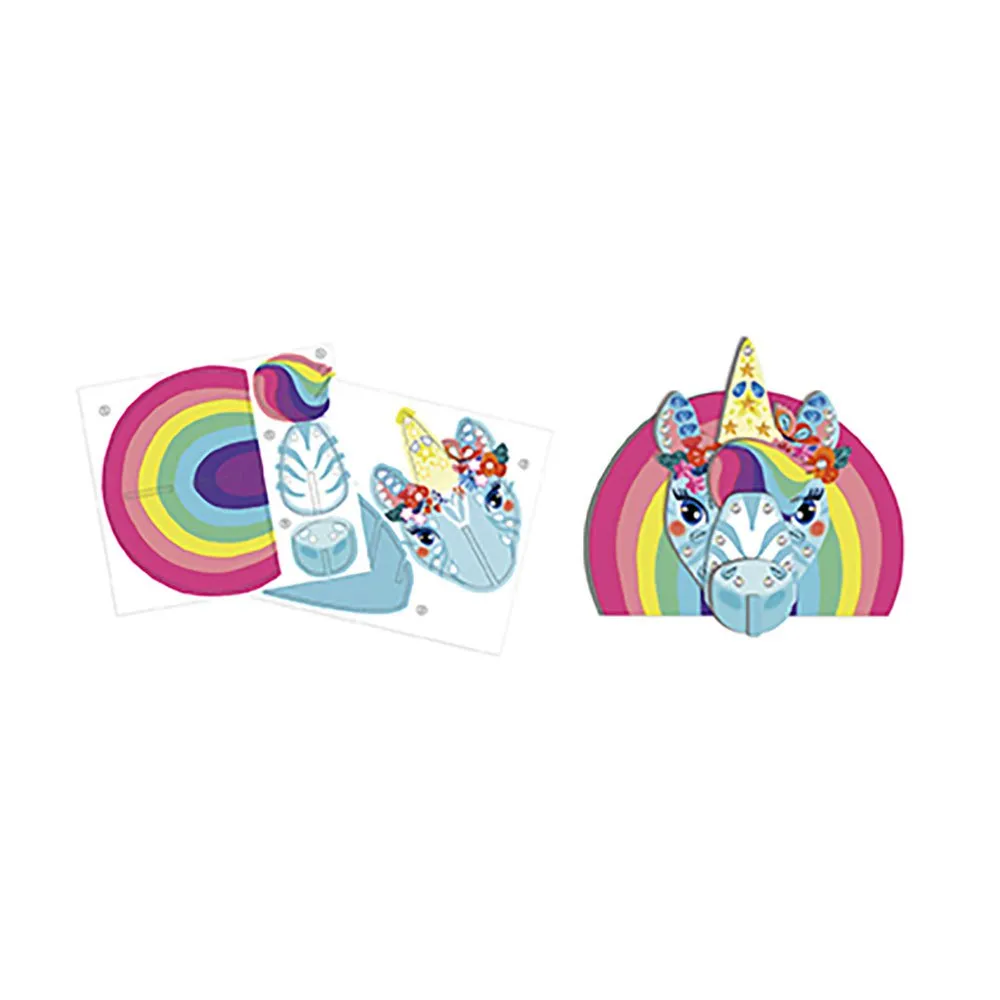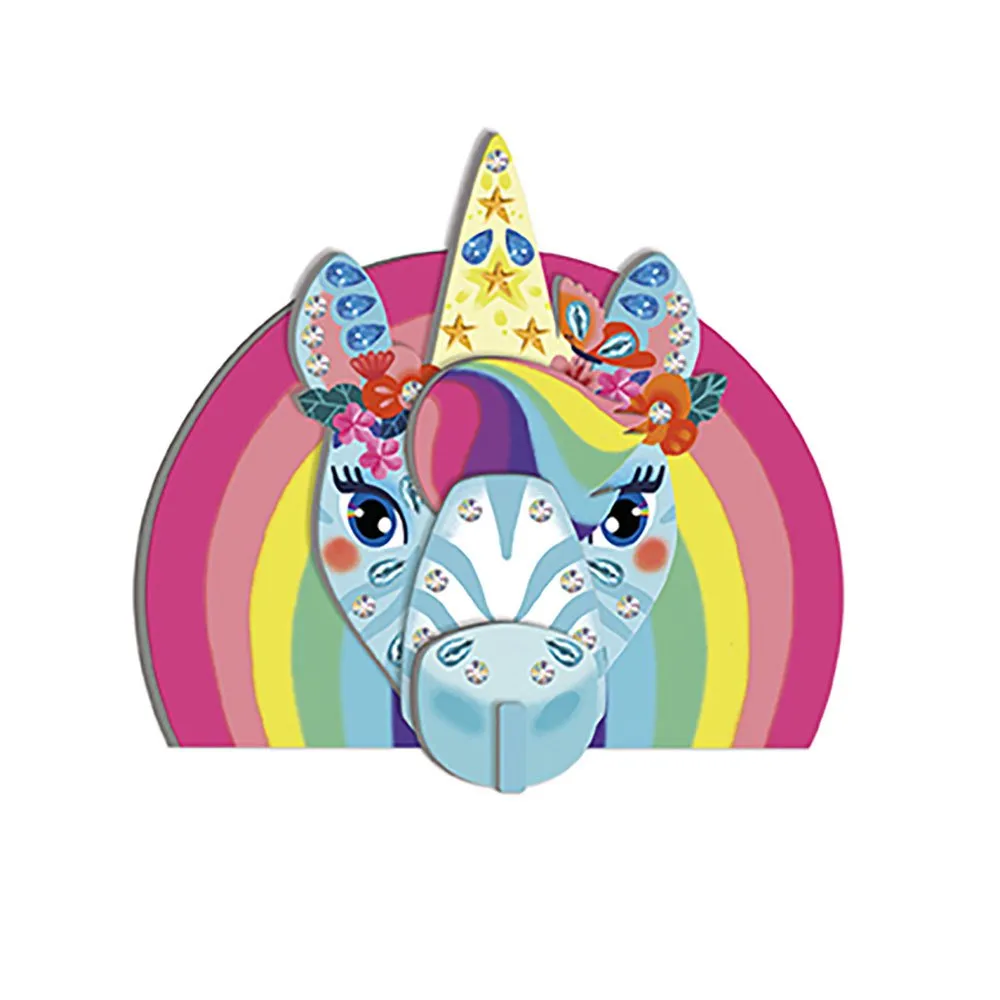 Enter the wonderful world of unicorns, glitter and rainbows! This creative set consists of 6 decorations and fashion accessories to make! A unicorn trophy to assemble, a dream catcher, 2 brooches, a caticorn pompom and a hanging rainbow decoration in wire and cotton.