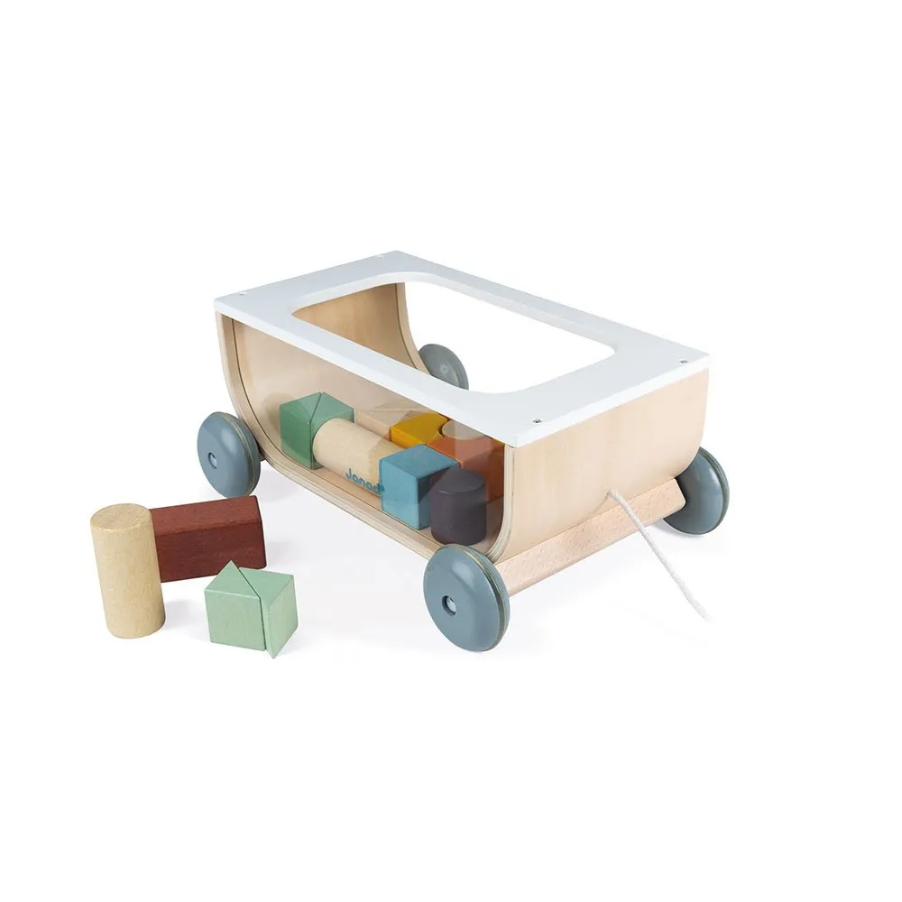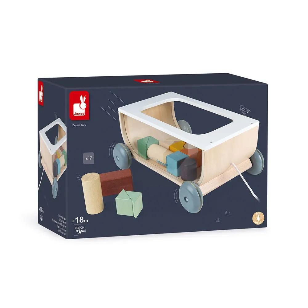 a construction toy with 17 blocks and one pull-along cart to bring along everywhere once your baby takes their first steps.