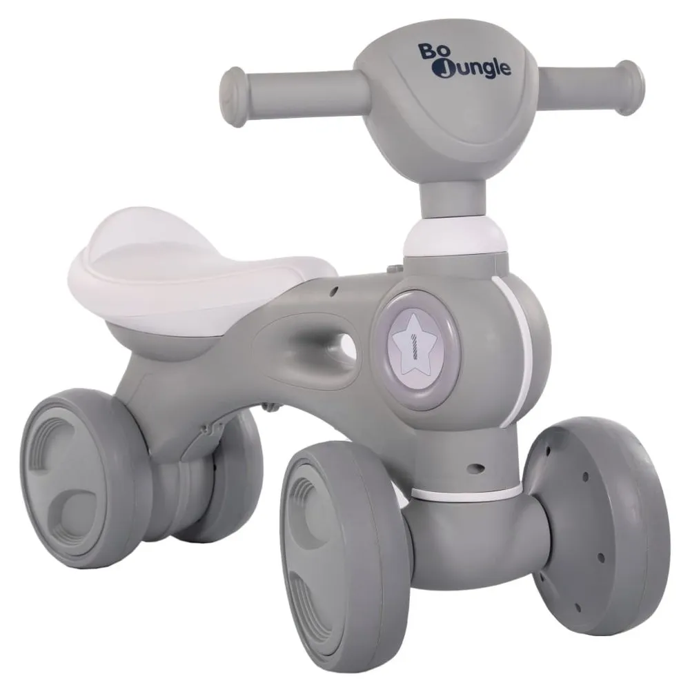 The stylish ride-on toy comes with various special features, making kid’s playtime fun and exhilarating! It is a magical product for children with a simple design. It is easy to ride on it. The seat is of high comfort for your little one. This kids ride-on toy has a hip and trendy design with sound effects to entertain your baby. The Bo Jungle baby push vehicle functions on three 1,5 V AA batteries.
