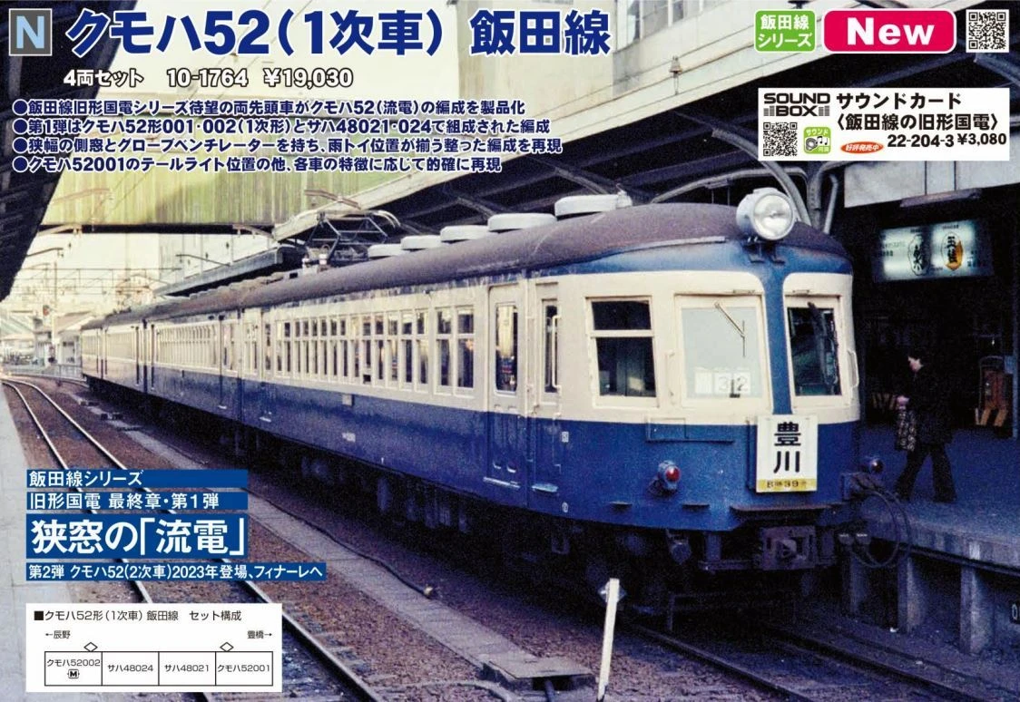 The KUMOHA Type 52 (1st class) Iida Line, one of the most popular trains on the Iida Line before 1978, will be introduced to KATO’s Iida Line series. KUMOHA Type 52, which was built in 1936 for the Kansai Kyuden, was assigned to the Iida Line in 1957. At the time, the KUMOHA 52 was outstandingly popular on the Iida Line, where many old national railways came and went, and railway fans from all over the country came to see the famously streamlined “Ryuden” trains.