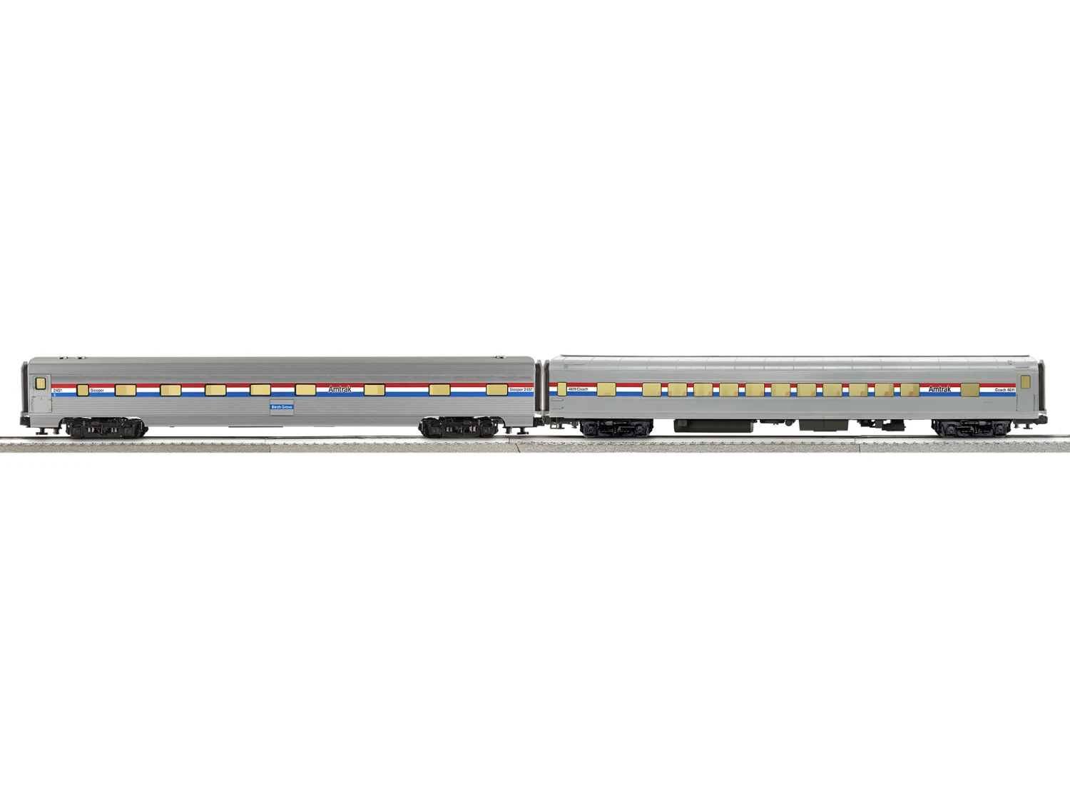 Amtrak’s “Heritage Fleet” was comprised of rebuilt equipment inherited from preceding railroads. Although cars received complete mechanical upgrades and modernization, they retained most of the external spotting features of their ancestry making this part of the roster some of the most interesting and diverse. Predominately used on eastern long distance routes, these cars could be regularly found mixed in consists with newer Amfleet or Viewliner equipment. Many cars survived into the 1990s and beyond. This run is finished in the “Phase III” paint scheme. Introduced in 1976, nearly all of the Heritage Fleet cars wore this paint scheme at some point, even after Phase IV paint was introduced in 1993. So they’ll look right at home behind a variety of Amtrak locomotives.