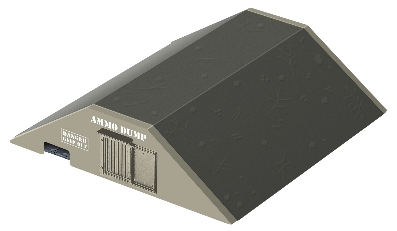 Caution! Live ammunition and explosions stored underground within this Ammunition Dump. Paired with the Missile Range, this will add some exploding action to your layout!