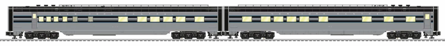 Widely considered the greatest passenger train of all time, the 20th Century Limited had already established a reputation when the New York Central upgraded the train in 1938. A new fleet of cars complemented the streamlined Hudson locomotives, providing an all new image from the pilot to the tail of the observation car. The all-Pullman, all-room luxury train included a pair of dining cars which doubled as night clubs after dinner service. While agents sorted the mail in the RPO, passengers could enjoy a hair cut, a cocktail or simply savor the view from the spacious lounge seating. Lionel’s new rendition of this train includes new tooling for the RPO, dining and distinctive observation cars. Also included are Pullman Standard 10-5 and 4-4-2 sleepers appropriate for the 1938 consist. This run of cars will feature the 1938 as-delivered New York Central paint scheme including the blue accent stripes and Pullman lettering. Because the 20th Century wouldn’t be complete with just one dining car, our StationSounds diner includes two cars – one with sounds and one without – to match the consist. Cars will feature 4 or 6 wheel trucks as appropriate. Don’t let the train of the century pass you by!