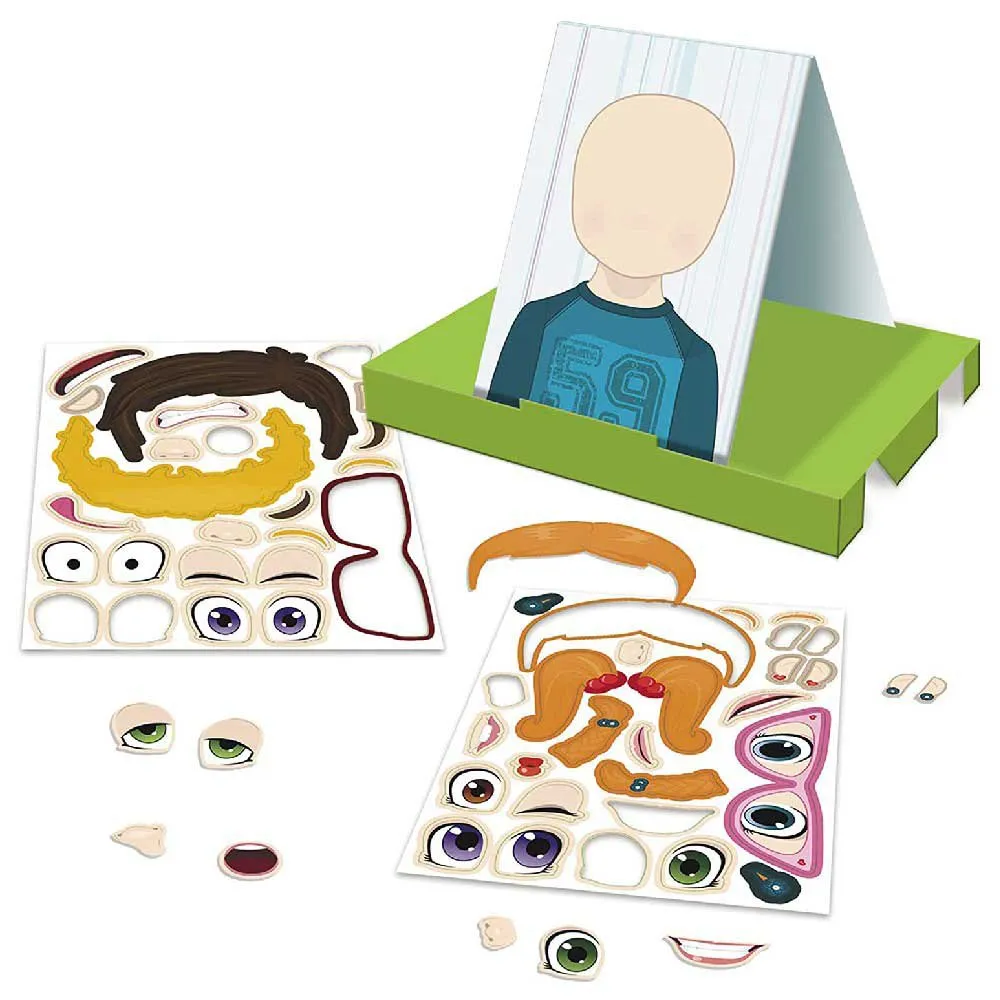 Double-sided blackboard and 2 sheets of magnetic pieces to create different faces and expressions.