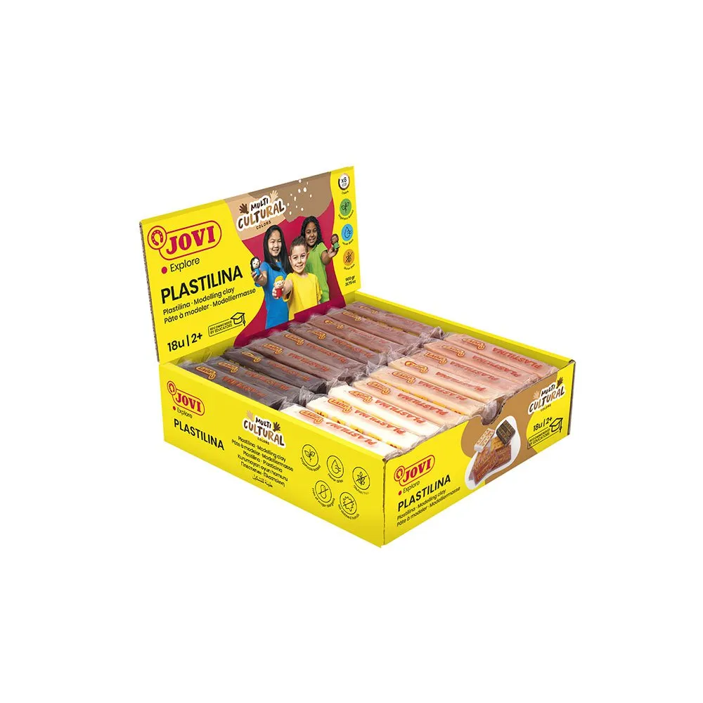 JOVI Modeling Clay Pack Of Vegetable-Based Plasticine is a set of 18 bars of 50 grams each, perfect for little artists to explore their creativity. The plasticine is vegetable-based, meaning it is non-toxic and safe for children to use. The pack includes multicultural colors, promoting diversity and inclusion in art. With this multicolor set, children can create beautiful and imaginative artwork while developing their fine motor skills, hand-eye coordination, and imagination. This pack of JOVI Modeling Clay is a great toy for children to express themselves and have fun.