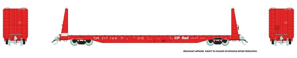 This beauty is the first accurate model of a Canadian 66′ bulkhead flatcar ever produced. For years Canadian modellers have had to put up with American prototype cars painted to represent these classic cars, but no more! Our HO model is based on cars that were built in huge quantities in the 1970s to early 1980s, and will be right at home on any layout based from the late 1970s to today.