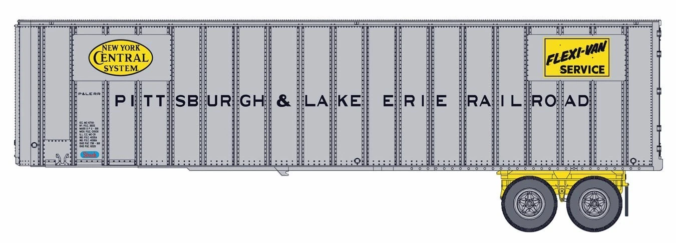 Yellow NYC and Flexi-Van placards, black P&LE name with end door